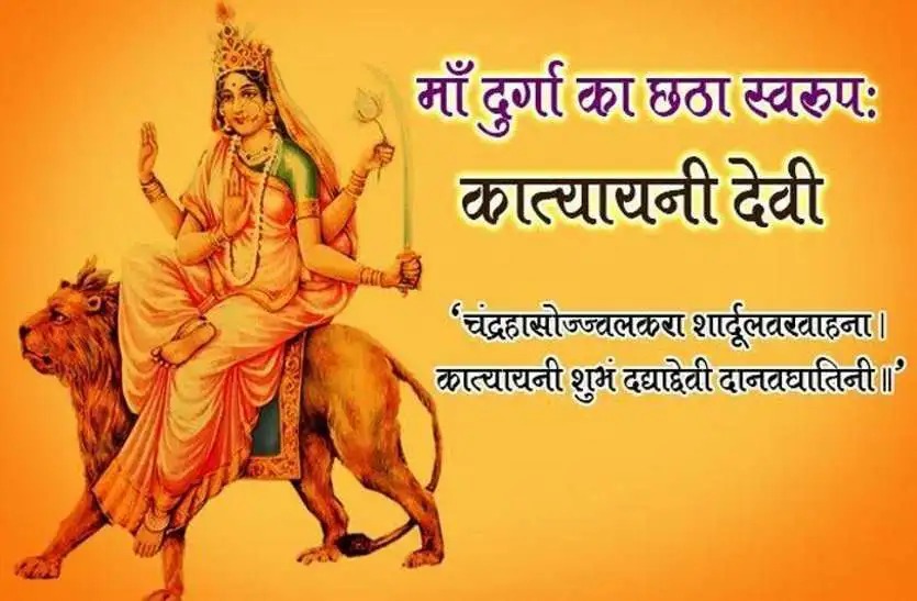 कात्यायन शब्द को कात्यायन वंश में जन्मे व्यक्ति के रूप में परिभाषित किया गया है और इसे नवरात्रि के छठे दिन सम्मानित किया जाता है। वह देवी दुर्गा का छठा अवतार हैं और बहादुरी और विजय का प्रतिनिधित्व करती हैं। शेर पर सवार हैं। इस दिन का रंग हरा है, जो सद्भाव और विकास का प्रतिनिधित्व करता है। यह सद्भाव, उर्वरता और प्रकृति का भी प्रतिनिधित्व करता है। इस दिन हरा रंग पहनना कात्यायनी की सुरक्षा, साहस और अच्छे स्वास्थ्य का प्रतीक है। इस दिन हरा रंग पहनें और देवी आपको शांति का आशीर्वाद दें।